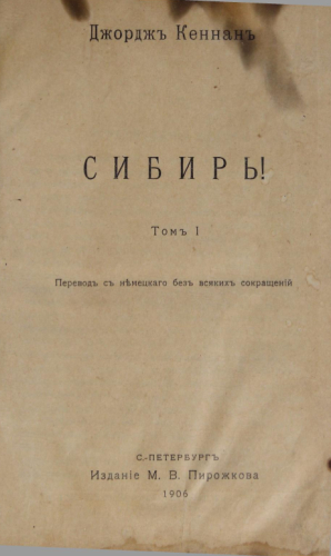 Кеннан, Джордж (1845-1924). Сибирь! Т. 1. / Джордж Кеннан ; пер. с нем. без всяких сокр. - Санкт-Петербург : М.В. Пирожков, 1906