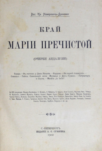 Немирович-Данченко, Василий Иванович (1844-1936). Край Марии Пречистой : (Очерки Андалузии) / Вас. Ив. Немирович-Данченко. - Санкт-Петербург : А.С. Суворин, 1902