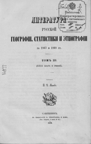 Литература русской географии, статистики и этнографии за 1867 и 1868 гг.