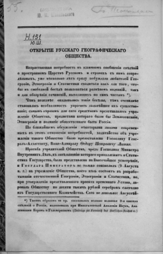 Двадцатипятилетие Императорского Русского географического общества, 13 января 1871 года. - Санкт-Петербург : Тип. Майкова, 1872 - (Приплетено : Открытие Императорского Русского географического общества. - СПб, 1845. - Отд. оттиск : С.-Петерб. ведомости. 1845. № 231)