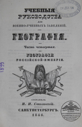 Соколовский, Николай Игнатьевич (1779-1849). География. Ч. 4 : География Российской империи. - [2-е изд.]. - Санкт-Петербург : Тип. воен.-учеб. заведений, 1846