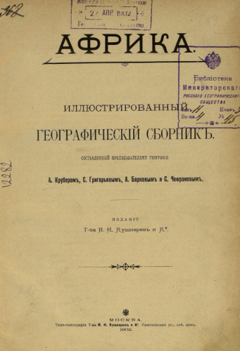Крубер, Александр Александрович (1871-1941). Африка : иллюстрированный географический сборник / сост. преп. А. Крубером, С. Григорьевым, А. Барковым, С. Чефрановым. - Москва : Т-во И.Н. Кушнерев и К°, 1902