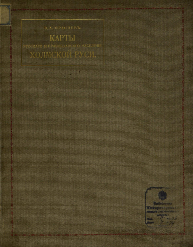 Францев, Владимир Андреевич (1867-1942). Карты русского и православного населения Холмской Руси с статистическими таблицами к ним / Сост. В.А. Францев, проф. Имп. Варш. ун-та. - Варшава : Холм. свято-богородиц. братство, 1909
