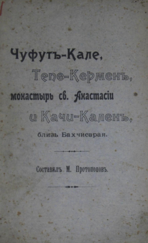 Протопопов, Михаил Алексеевич (1848–1915). Чуфут-Кале, Тепе-Кермен, монастырь св. Анастасии и Качи-Кален / сост. М. Протопопов. - Севастополь : Пар. тип. С.М. Брун, 1905