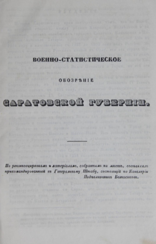 Военно-статистическое обозрение Российской империи. Т. 5, Ч. 4 : Саратовская губерния / Изд. по высочайшему повелению при I Отд. Департамента Ген. штаба. - 3-е изд. - Санкт-Петербург : Тип. Департамента Ген. штаба, 1852