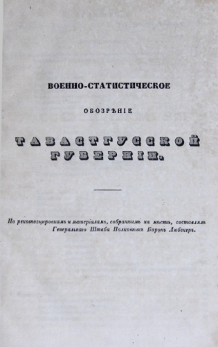 Военно-статистическое обозрение Российской империи. Т. 1, Ч. 4 : Тавастгусская губерния / Изд. по высочайшему повелению при I Отд. Департамента Ген. штаба. - 3-е изд. - Санкт-Петербург : Тип. Департамента Ген. штаба, 1851