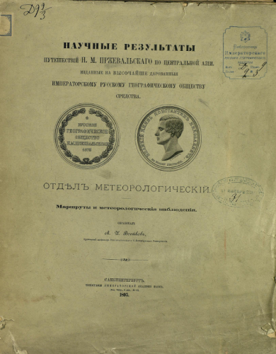 Научные результаты путешествий Н.М. Пржевальского по Центральной Азии. Отдел метеорологический : Маршруты и метеорологические наблюдения / обр. А.И. Воейков. - Санкт-Петербург, 1895