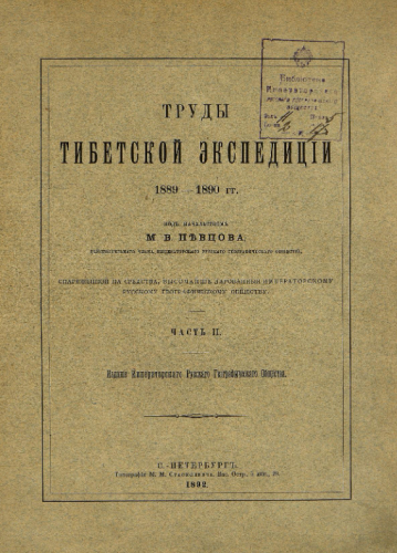 Труды Тибетской экспедиции 1889-1890 гг. под начальством М.В. Певцова. Ч. 2 : Геологические исследования в Восточном Туркестане / [соч.] К.И. Богдановича. - С.-Петербург, 1892