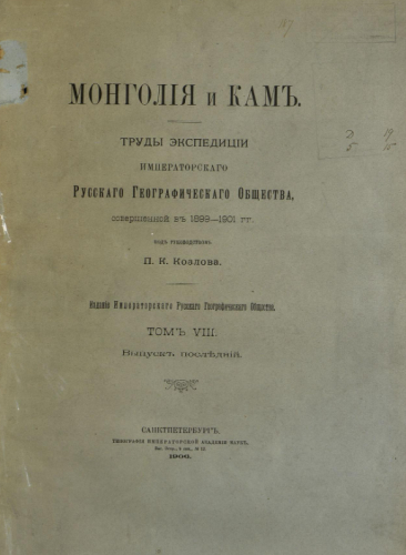 Монголия и Кам : Труды Экспедиции ИРГО, совершенной в 1899-1901 гг. под рук. П.К. Козлова. Т. 8 : Диатомовые водоросли Тибета