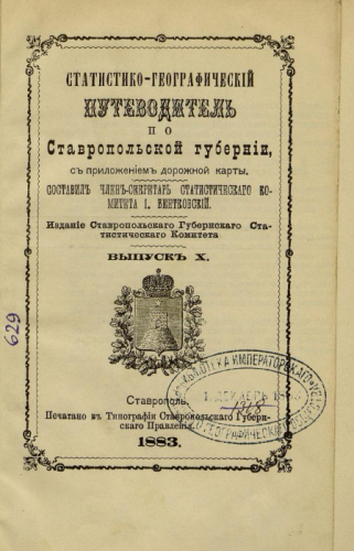 Бентковский, Иосиф Викентьевич (1812-1890). Статистико-географический путеводитель по Ставропольской губернии / сост. чл.-секр. Стат. ком. И. Бентковский. - Ставрополь : Ставроп. Губ. стат. ком., 1883