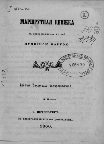 Маршрутная книжка с принадлежащею к ней нумерною картою. - Санкт-Петербург : Тип. Почт. департ., 1860
