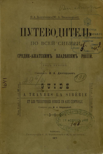 Долгоруков, Всеволод Алексеевич (1845-1912). Путеводитель по всей Сибири и средне-азиатским владениям России : Год 2-й / сост. В. А. Долгоруков. - Томск : Тип. Г.В. Прейсман и Н.Я. Беляска, 1897