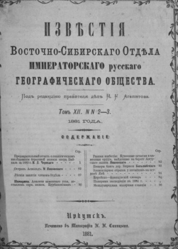 Известия Восточно-Сибирского отдела ИРГО. Т. ХII, № 2-3 - Иркутск, 1881