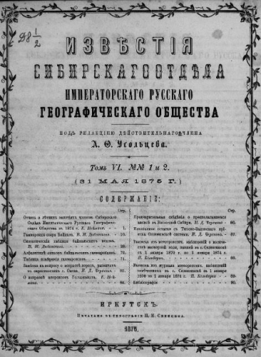 Известия Сибирского отдела ИРГО. Т. VI, № 1-2 - Иркутск, 1875