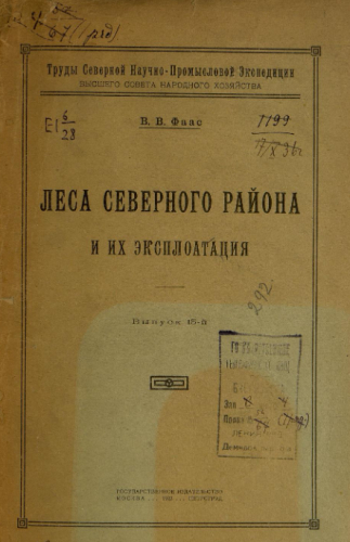 Труды Северной научно-промысловой экспедиции ВСНХ. Вып. 15 : Леса Северного района и их эксплуатация / В.В. Фаас. - Москва ; Петроград : Госиздат, 1922