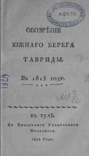 Броневский, Владимир Богданович (1784-1835). Обозрение южного берега Тавриды. В 1815 году. - Тула : В тип. Губ. правления, 1822