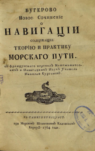 Бугер, Пьер (1698-1758). Бугерово новое сочинение о навигации, содержащее теорию и практику морского пути / С фр. пер. математических и навигацких наук учитель Николай Курганов. - Санкт-Петербург : При Морск. Шляхетн. кад. корпусе, 1764