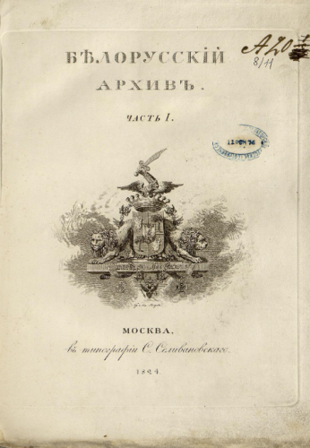 Белорусский архив древних грамот. Ч. 1. / [сост. И.И. Григорович]. - Москва : Тип. С. Селивановского, 1824