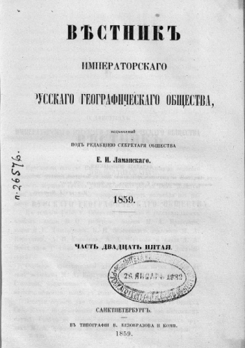 Вестник Императорского Русского географического общества. Ч. 25. - СПб., 1859