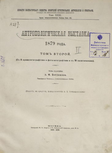 Известия Имп. Общества любителей естествознания, антропологии и этнографии. Т. 31 : Труды Антропологического отдела. Т. 4 : Антропологическая выставка 1879 года. Т. 2. - Москва, 1879