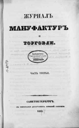 Журнал мануфактур и торговли. 1854, № 7-8. - Санкт-Петербург, 1854