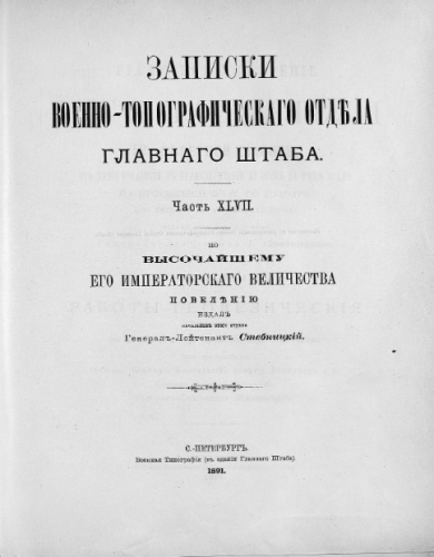 Записки Военно-топографического отдела Главного управления Генерального штаба. Ч. 47. - СПб., 1891.