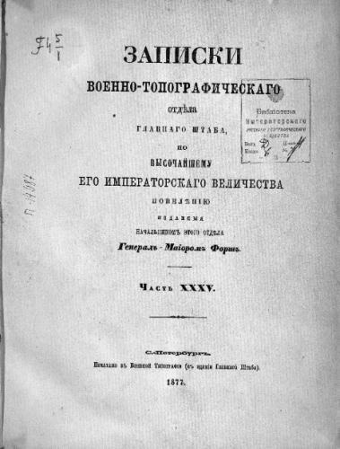 Записки Военно-топографического отдела Гл. штаба. Ч. XXXV / изд. ген.-майор. Форш. - Санкт-Петербург, 1877