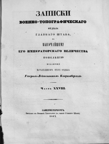 Записки Военно-топографического отдела Гл. штаба. Ч. XXVIII / изд. ген.-лейт. Бларамбергом. - Санкт-Петербург, 1867