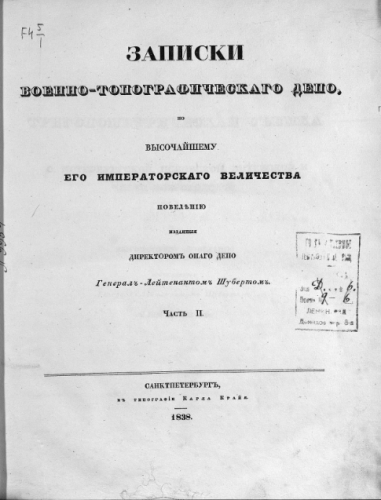 Записки Военно-топографического отдела Главного управления Генерального штаба. Ч. 2. - СПб., 1838.