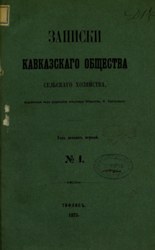 Записки Кавказского общества сельского хозяйства. 1875, № 1. - Тифлис, 1875