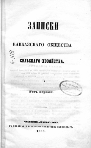 Записки Кавказского общества сельского хозяйства. 1855. - Тифлис, 1855
