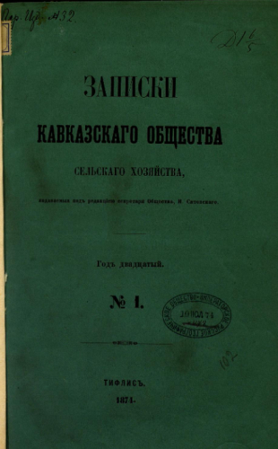 Записки Кавказского общества сельского хозяйства. 1874, № 1. - Тифлис, 1874