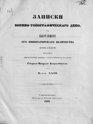 Записки Военно-топографического депо. Ч. XXIII / изд. ген.-майор. Бларамбергом. - Санкт-Петербург, 1862