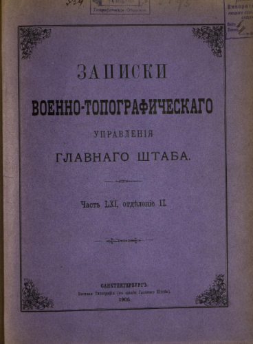 Записки Военно-топографического отдела Главного управления Генерального штаба. Ч. 61. Отд-ние 2. - СПб., 1905.