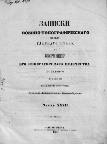 Записки Военно-топографического отдела Гл. штаба. Ч. XXVII / изд. ген.-лейт. Бларамбергом. - Санкт-Петербург, 1866