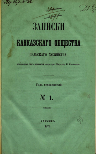 Записки Кавказского общества сельского хозяйства. 1871, № 1. - Тифлис, 1871