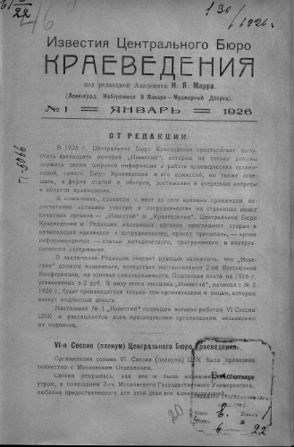 Известия Центрального бюро краеведения. 1926, № 1. - Ленинград, 1926