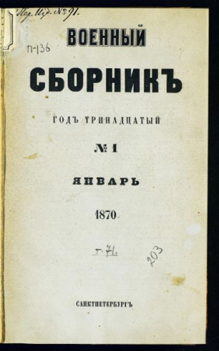 Военный сборник. 1870, № 1. - Санкт-Петербург, 1870