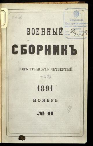 Военный сборник. 1891, № 11. - Санкт-Петербург, 1891