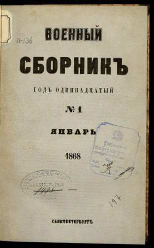 Военный сборник. 1868, № 1. - Санкт-Петербург, 1868