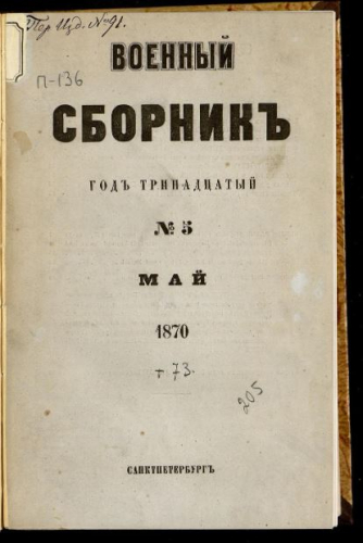 Военный сборник. 1870, № 5. - Санкт-Петербург, 1870