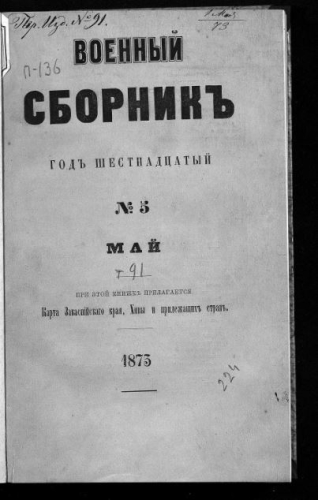 Военный сборник. 1873, № 5. - Санкт-Петербург, 1873