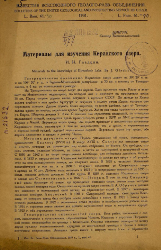 Известия Всесоюзного геолого-разведочного объединения. Т. 50, № 61. - Ленинград, 1931
