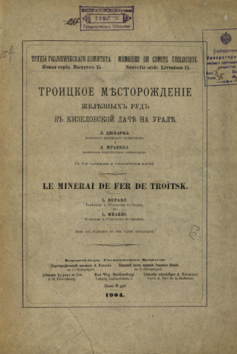 Труды Геологического комитета. Новая серия. Вып. 15 : Троицкое месторождение железных руд в Кизеловской даче на Урале / Л. Дюпарк и Л. Мразек. - Санкт-Петербург, 1904