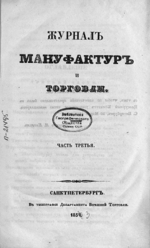Журнал мануфактур и торговли. 1853, № 7-8. - Санкт-Петербург, 1853