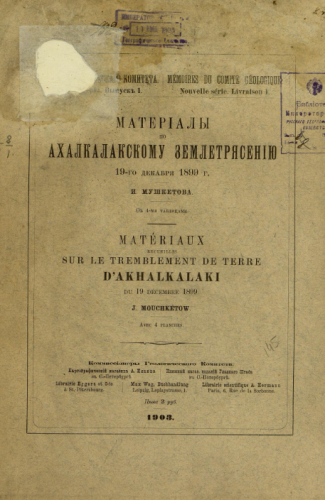 Труды Геологического комитета. Новая серия. Вып. 1 : Материалы по Ахалкалакскому землетрясению 19-го декабря 1899 г.
