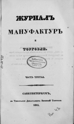 Журнал мануфактур и торговли. 1845, № 7-9. - Санкт-Петербург, 1845