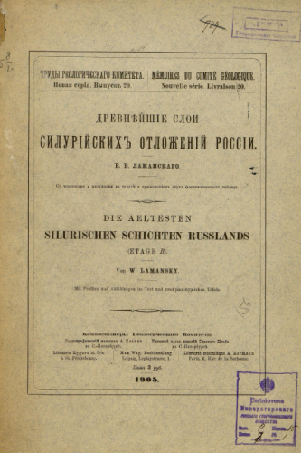 Труды Геологического комитета. Новая серия. Вып. 20 : Древнейшие слои силурийских отложений России / В.В. Ламанский - Санкт-Петербург, 1905