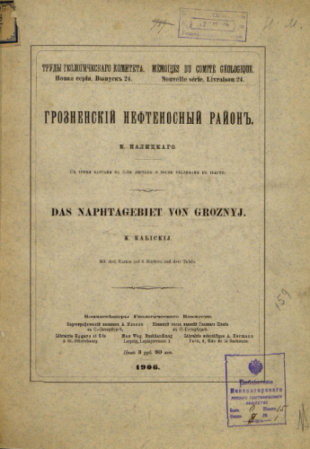 Труды Геологического комитета. Новая серия. Вып. 24 : Грозненский нефтеносный район / К. Калицкий - Санкт-Петербург, 1906
