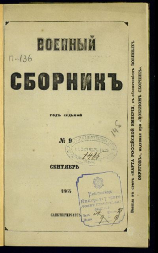 Военный сборник. 1864, № 9. - Санкт-Петербург, 1864